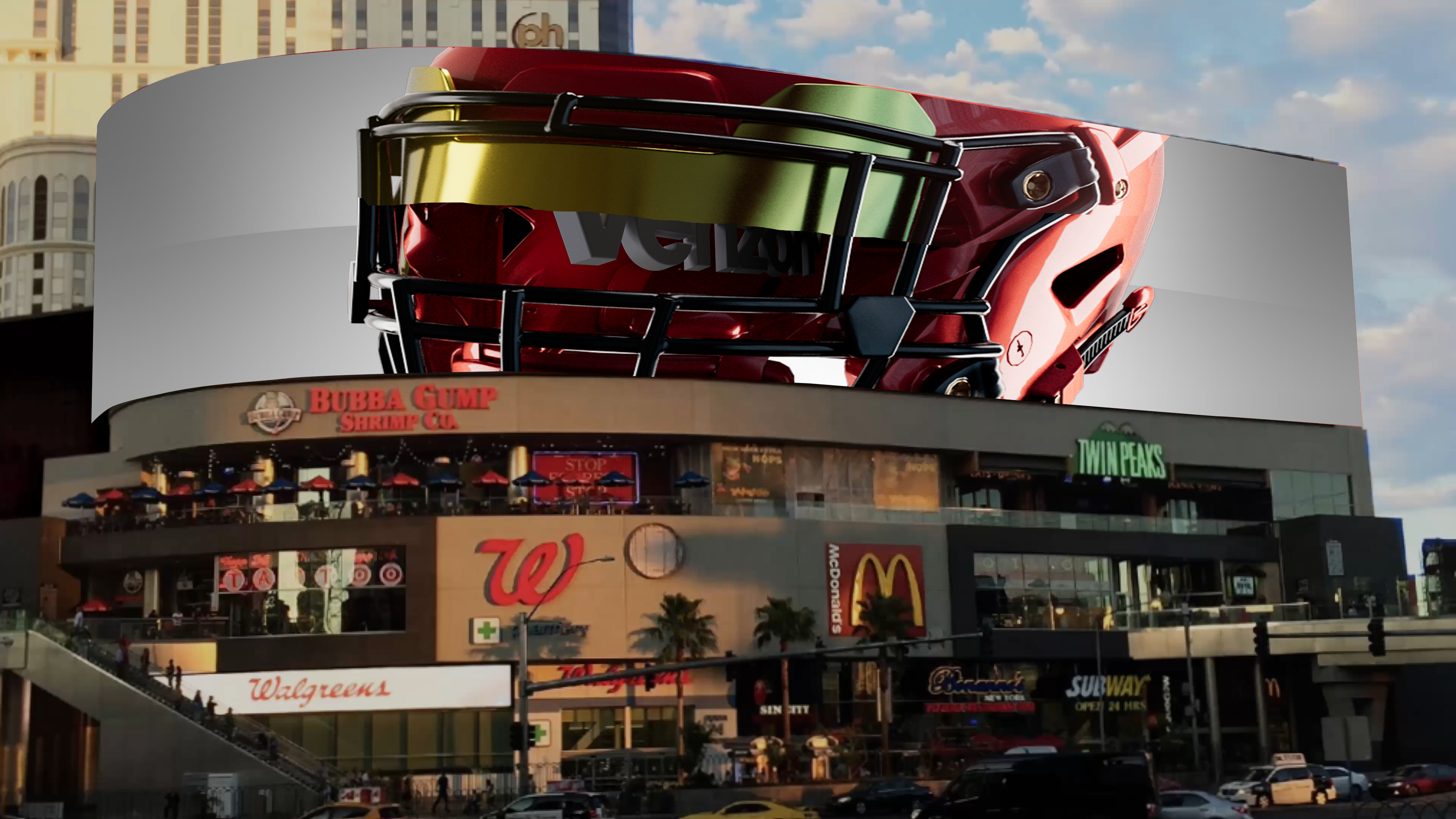 In collaboration with Ogilvy & Verizon, we embarked on an ambitious project to dominate the Las Vegas scene for the Superbowl. Our creative endeavor included creating a giant football helmet for the Las Vegas Sphere, which housed an immersive deepscreen stadium experience within its structure. Additionally, we developed a 3D billboard tailored for screens of four varying sizes, showcasing a vibrant stadium filled with spectators witnessing a successful pass between a quarterback and receiver. This entire project was brought to completion in under five weeks.